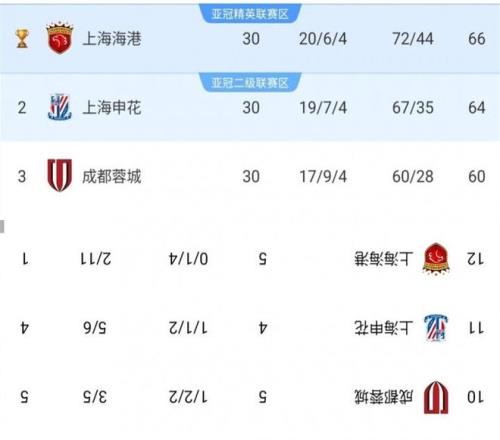 有人弄了一个中超和亚冠倒转榜(上图)。这一转就看出门道:中超是海港第一,申花第二,成都蓉城第三;到了亚冠这排名则倒转过来:成都蓉城5分第一,申花4分第二,海港1分排名第三。