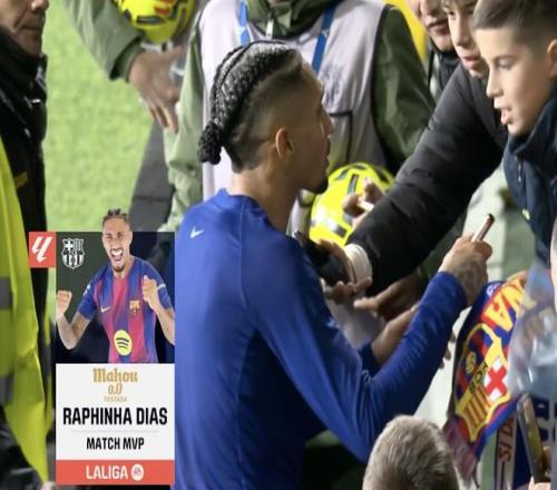 此役客场对阵比利亚雷亚尔,首发出战的拉菲尼亚在上半场第12分钟造点并亲自操刀命中,帮助巴塞罗那取得1-0领先,最终2-0取胜。